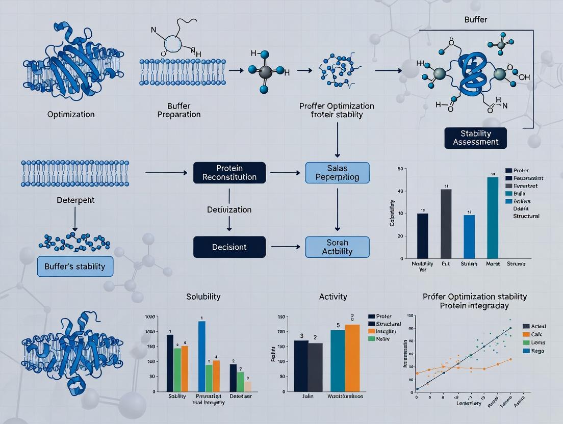 The amphipathic nature of membrane proteins necessitates careful buffer design to maintain native conformation and function post-solubilization.